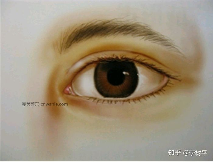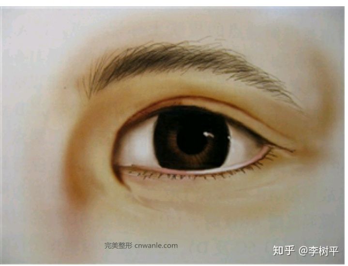 內(nèi)眥贅皮是東方人常見的眼睛小缺陷,使眼睛顯得短,看一下圖就明白了。