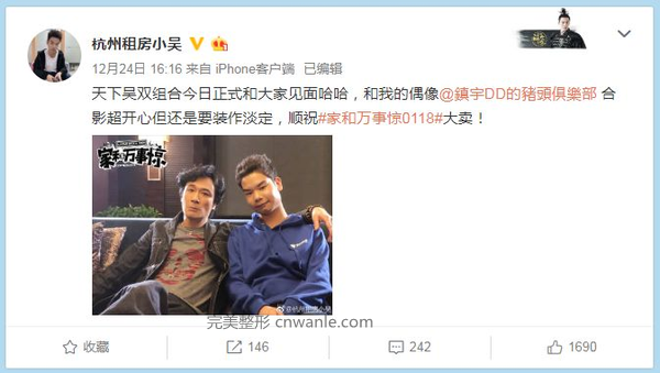 不過近日,小吳曬出與吳鎮(zhèn)宇的合照