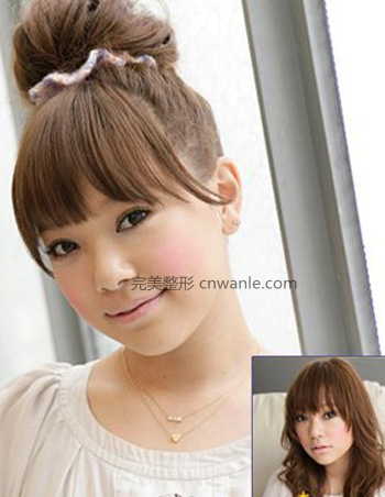不少妹紙不喜歡留劉海,在扎起頭發(fā)的時(shí)候,試著將額頭兩邊制造出斜碎劉海,既可以遮住過(guò)高的額頭,還能夠修飾臉型,亂中有序,顯得整個(gè)人萌萌噠。