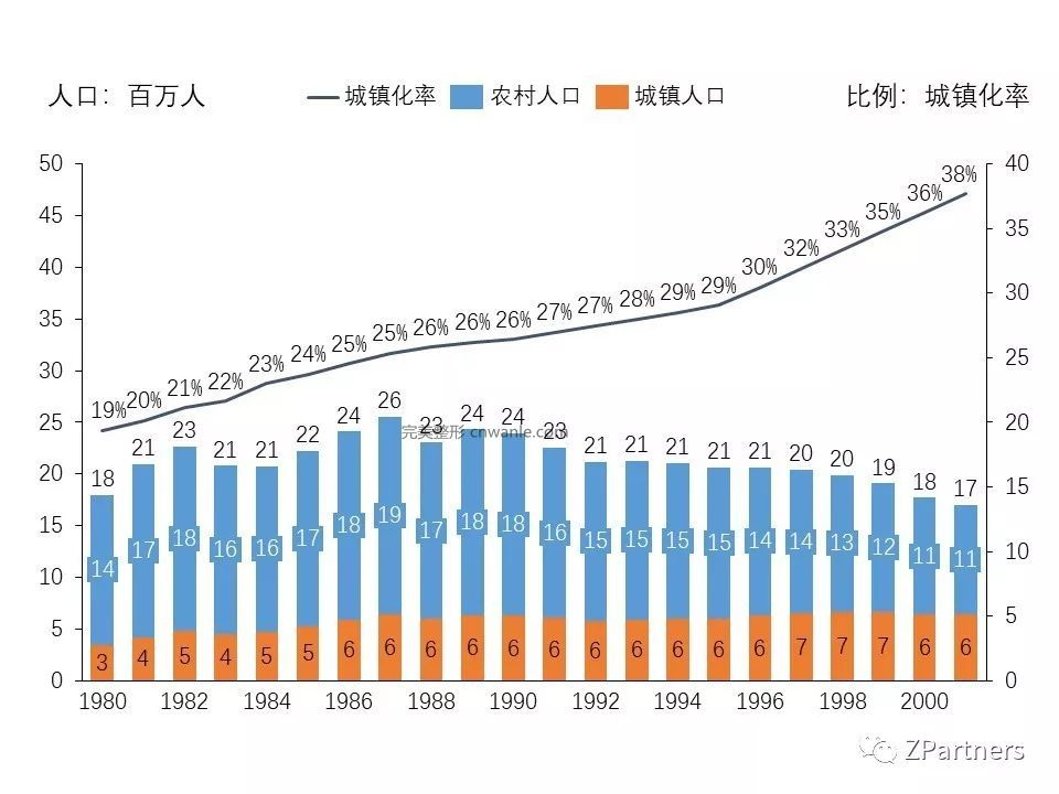 1980 - 2001年出生城鎮(zhèn)和農(nóng)村出生人口按城鎮(zhèn)化比率估算